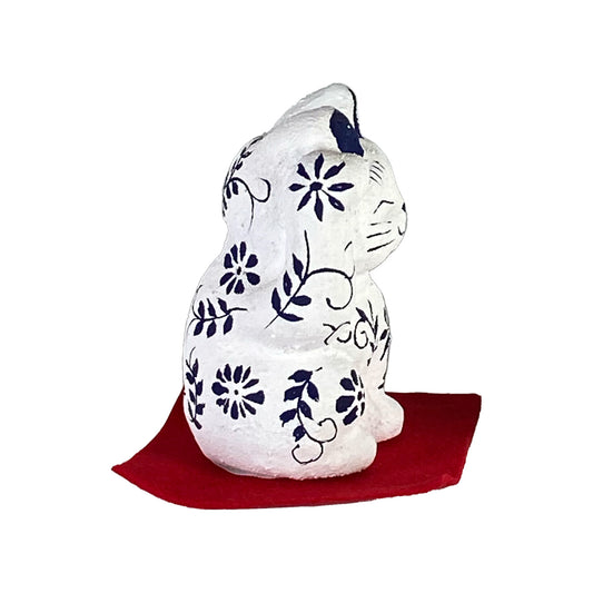 玩古庵 8号招き猫 漆喰加工 白フラワーリーフ