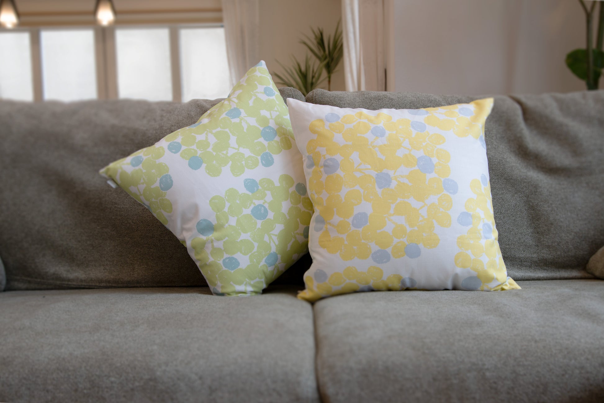 ポリエステル綿100%のクッションを圧縮した状態で一緒にお届けしますので、袋からあけ、前後左右に叩き空気を入れてふっくらさせたのち、カバーを取り付けてください。クッションそのもののお洗濯は手洗いをお薦めしております。